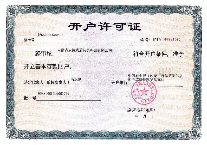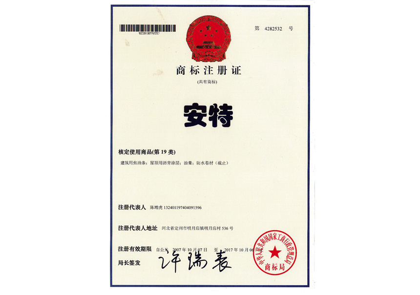 公司主要产品有:“安特”牌高分子类防水卷材和“安特威盾”牌防水涂料系列产品。