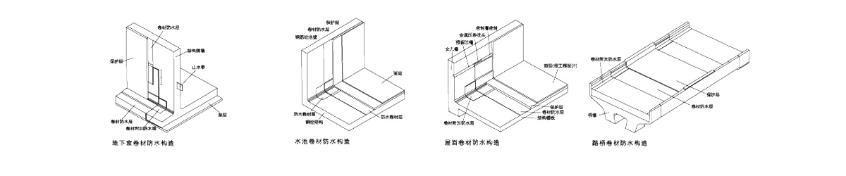 重点防水工程及工业与民用建筑的屋面、墙体、地下室、卫生间等的防水防潮;桥梁、道路、停车场、游泳池、隧道、蓄水池等建筑物的防水;特别适用于结构变形频繁和寒冷地区的建筑物;管道、防腐层的保护及包管、防潮。