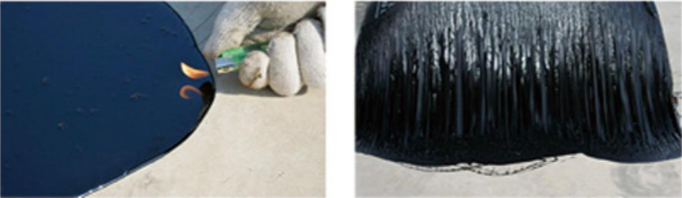 3、自愈性能:水性非固化橡胶沥青防水涂料蠕变性能,粘结性能赋予了良好的自愈性,能够修复部分外物穿刺,撕裂等对防水层的破坏;
